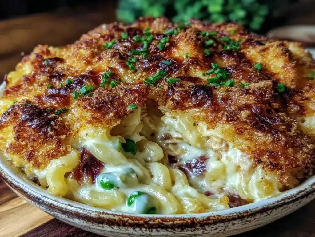 A comforting and easy-to-make tuna casserole featuring creamy sauce, tender pasta, and a golden crispy breadcrumb topping. Perfect for family meals, potlucks, and cozy dinners.